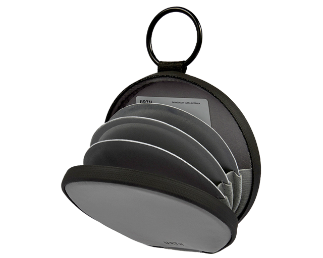 The Lens Filter Pouch delivers streamlined, field-ready protection for up to 4 circular filters. Engineered with a weather-sealed recycled shell, padded internal dividers and secure clip attachment.
